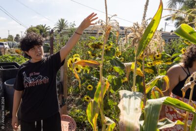 Kim Aguilar teaches local community members how to grow their own food.